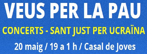 Divendres 20 de maig a partir de les 19 h el Casal de Joves acollirà els concerts Veus per la Pau en solidaritat amb el poble ucraïnès.