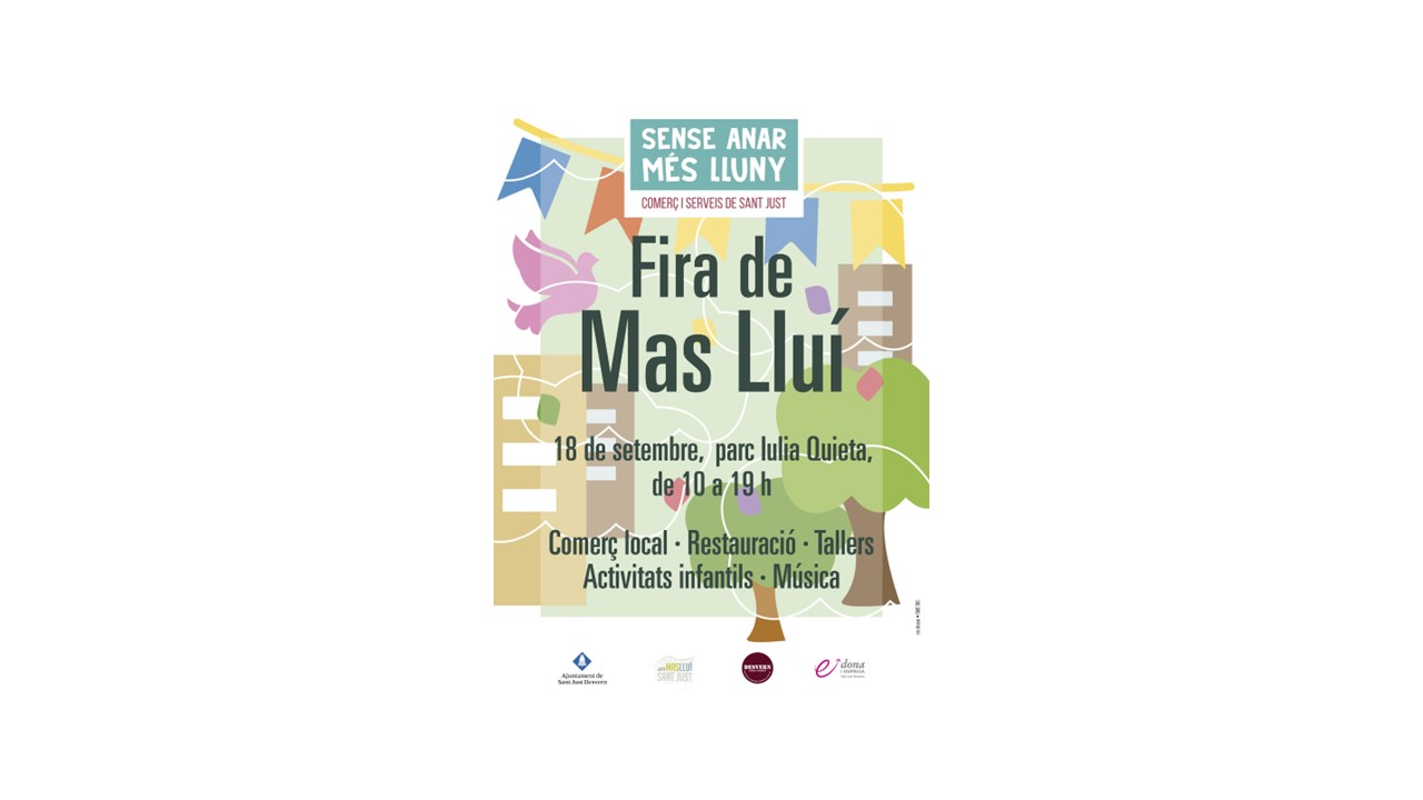 La primera edició de la Fira de Mas Lluí tindrà lloc al parc de Iulia Quieta el proper diumenge, 18 de setembre, durant tot el dia (de 10 h a 19 h). Hi participen una trentena d’establiments locals (comerç, restauració…) i s’hi faran diversos tallers, així com activitats infantils i música.