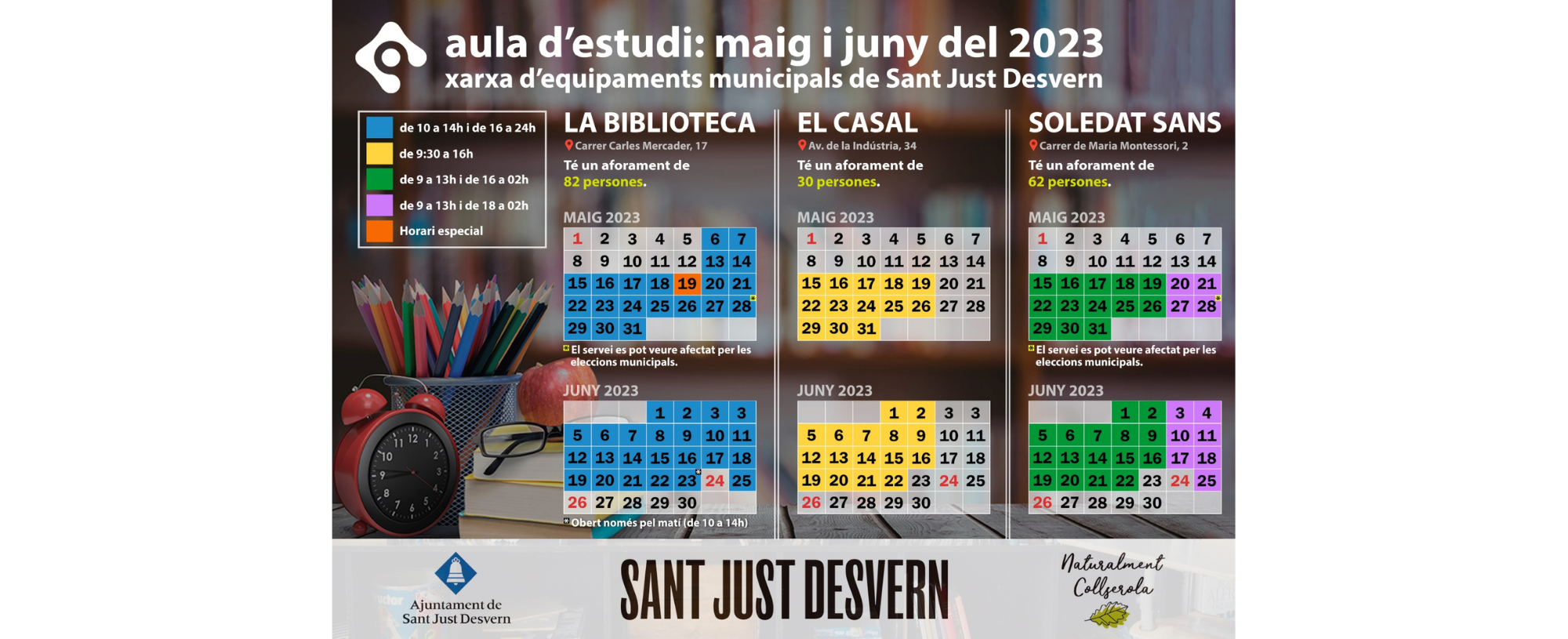 Aules d'estudi Sant Just maig i juny 2023