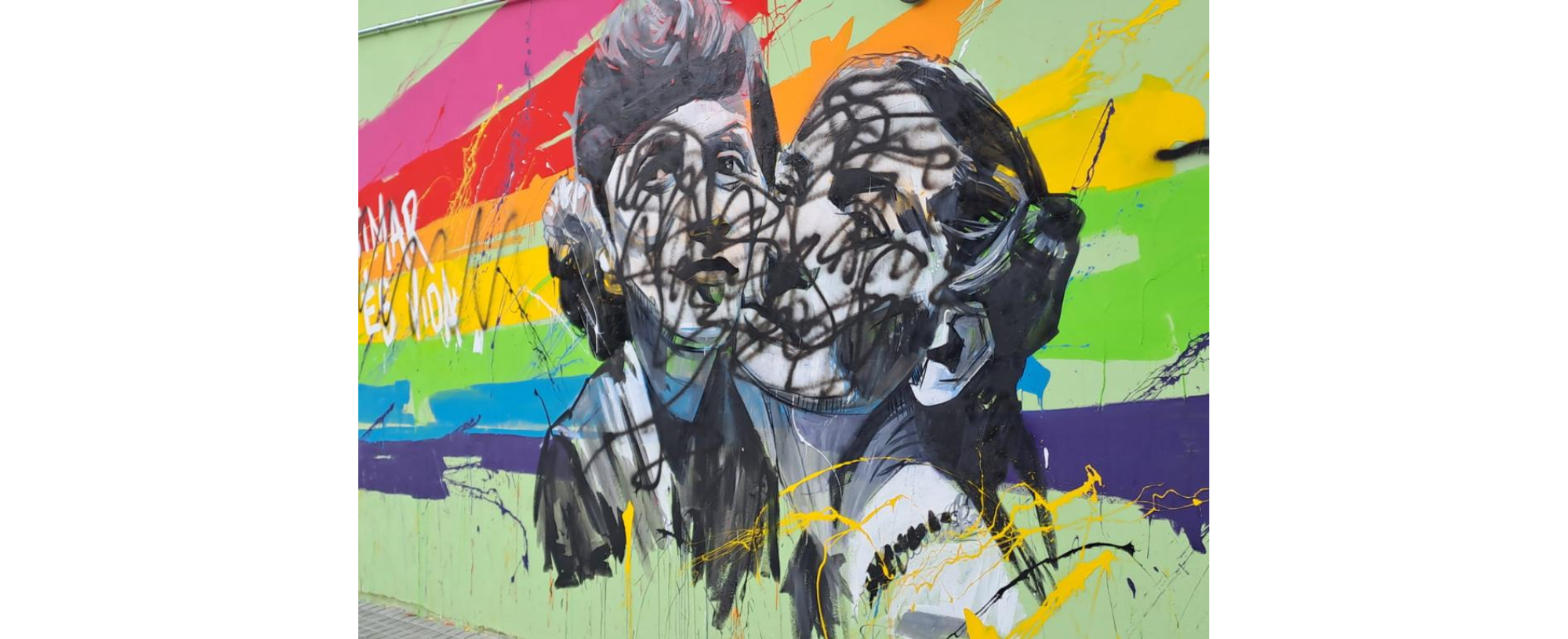 Els murals, dedicats a les migracions, el canvi climàtic, els drets de les dones i els drets de la comunitat LGTBIQ+, han aparegut plens de gargots i guixades amb esprai negre, i s’hi pot llegir el lema “por una familia tradicional”. Els artistes responsables de les obres d’art eren Goyo203 (José Luis Martínez Escudero), Carolina Adán Caro i Laila Ajjawi.