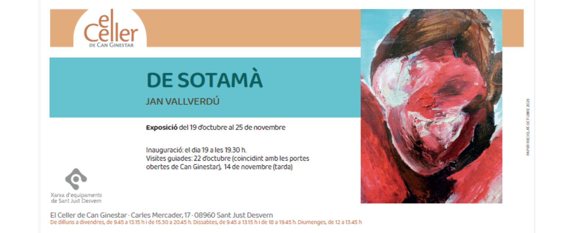 El 19 d’octubre, a 2/4de 8 del vespre, s’inaugura al Celler de Can Ginestar l’exposició “De sotamà” amb pintures de l’artista Jan Vallverdú.