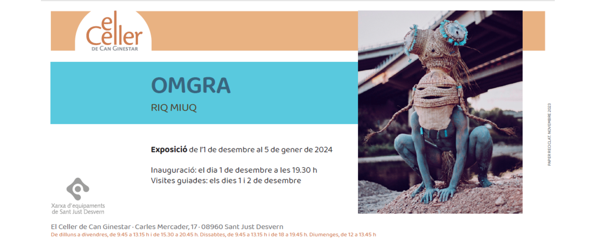 El Celler de Can Ginestar acull l’exposició “Omgra”, de l’artista santjustenc Joaquim Orriols. Aquesta és la darrera mostra de l’any 2023 al Celler i es podrà visitar de l’1 de desembre al 5 de gener.