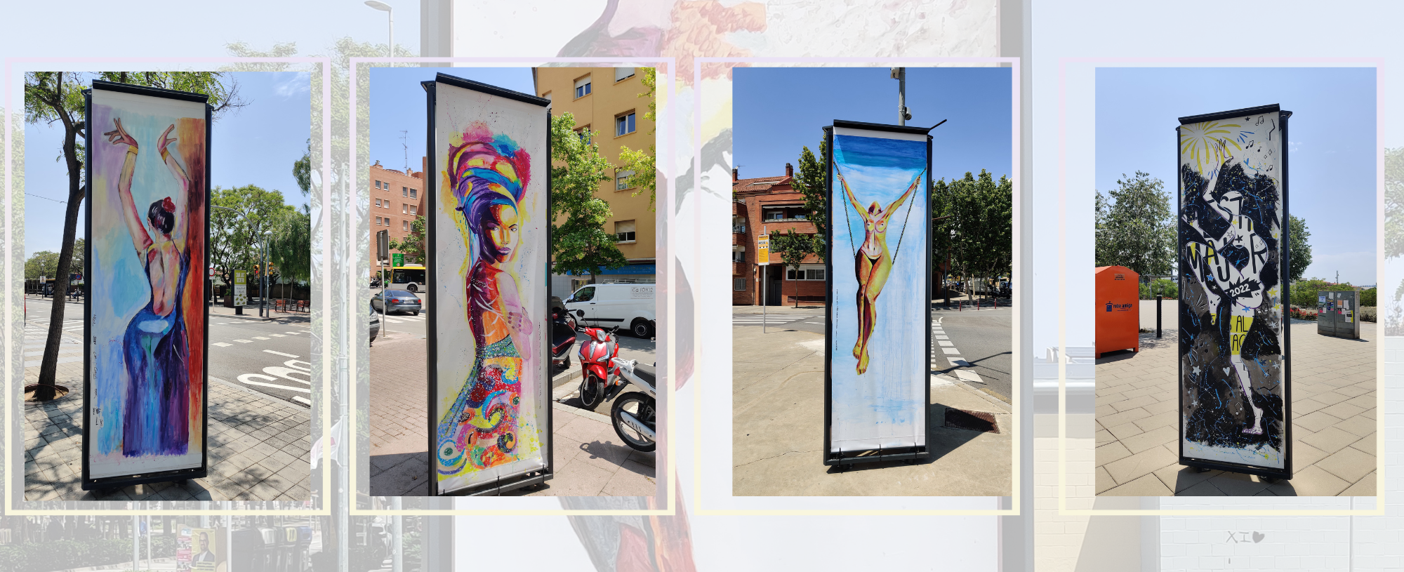 Es tracta d’una exposició de lones artístiques realitzades per diferents artistes locals i alumnes dels Cursos d’Arts Plàstiques Municipals, que durant l’any 2023 han estat ubicades a diferents punts de la via pública del municipi.