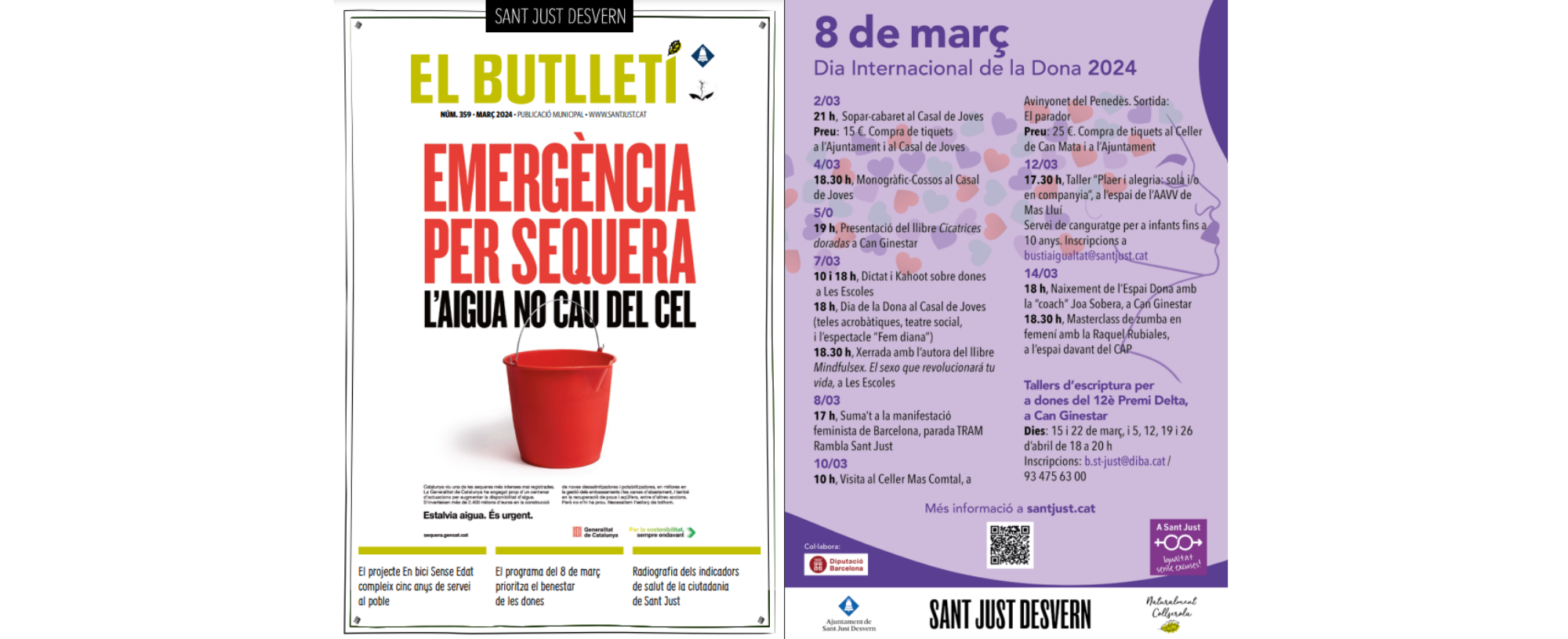 El Butlletí del mes de març obre les primeres pàgines amb diferents informacions relacionades amb l’estat d’emergència en què es troba l’Àrea Metropolitana a causa de la sequera i les accions necessàries per reduir el consum i per fer front a la greu situació. També s’inclouen deu consells per estalviar aigua a casa.