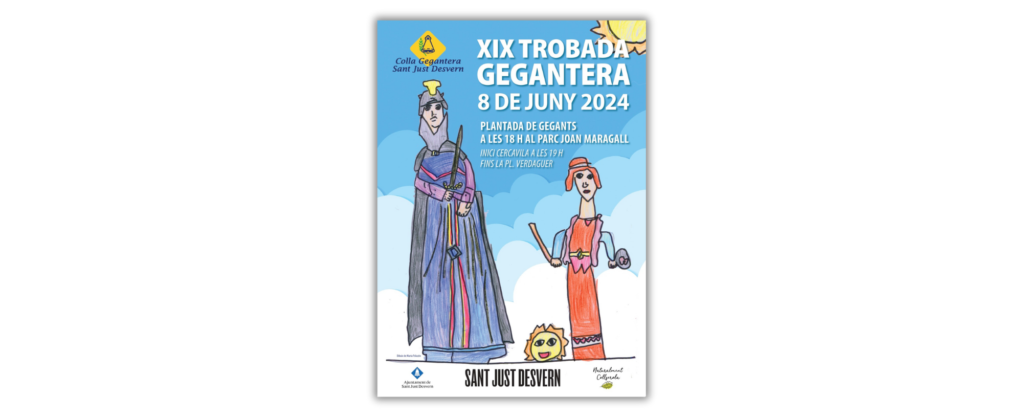 El cartell de la Trobada Gegantera s’escull mitjançant un concurs de dibuix entre els alumnes de segon de primària de totes les escoles de Sant Just Desvern. Enguany, el dibuix guanyador és de Maria Palazón, de l’escola Montserrat.