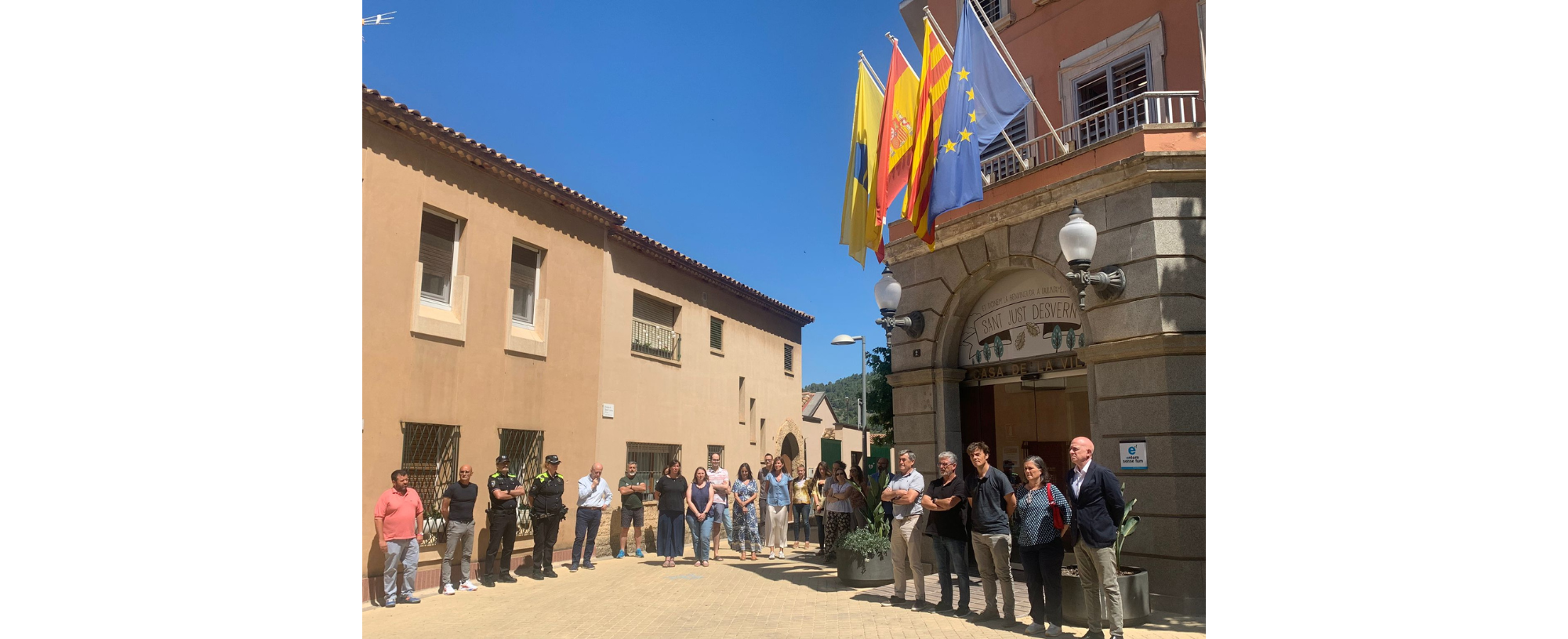Com a resposta als actes de violència masclista recents, en els quals han estat assassinades 4 dones i 2 infants en 24 hores, i davant la crida que s’ha fet des del Ministeri d’Igualtat i de la Federació de Municipis de Catalunya, aquest matí a les 12 h s’ha realitzat un minut de silenci davant de l’Ajuntament a fi de mostrar el condol i el rebuig per aquests fets.