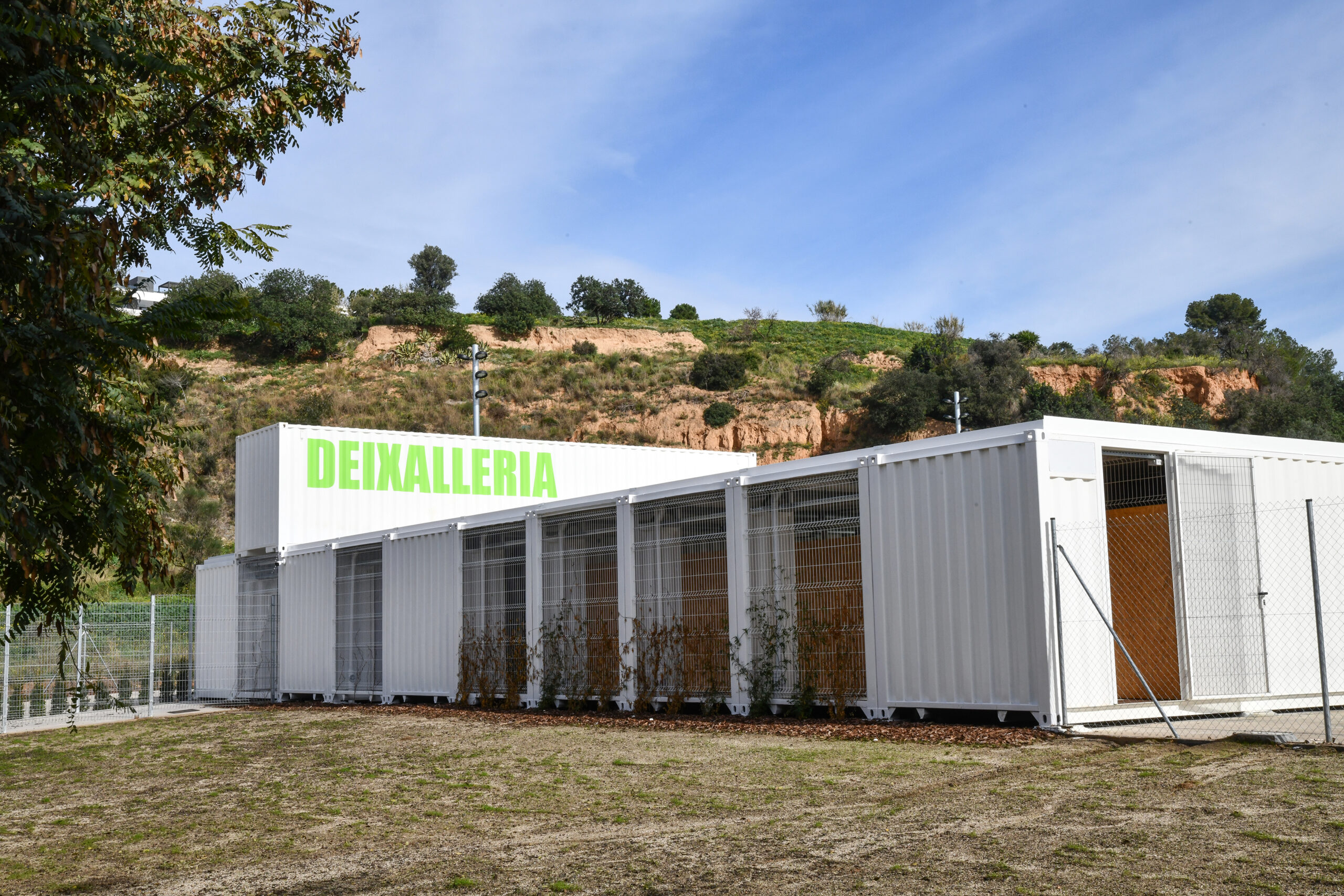 L’estructura principal de la deixalleria, un espai de tercera generació, es compon d’un edifici modular construït a partir de contenidors reutilitzats que ja havien arribat al final de la seva vida útil i que han estat reparats i adaptats per a aquest nou ús. A l’interior de l’edifici hi ha una zona d’oficines, un taller i un espai específic per a la recollida de residus especials, com ara olis, bateries i piles. A més, el projecte incorpora aïllaments interiors fets amb cotó regenerat, en coherència amb la filosofia de reutilització i sostenibilitat.
