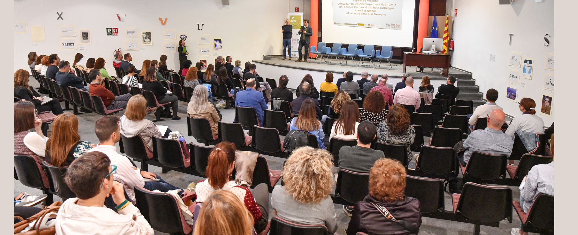 100 persones van assistir el passat 6 de maig a la jornada “Formació Professional Dual: canvis i oportunitats” organitzada conjuntament pel Consell Comarcal del Baix Llobregat i el servei de Promoció Econòmica de l’Ajuntament de Sant Just Desvern a l’Institut Algueró, amb el suport i la participació de la Fundació Privada GREMI de la Indústria i la Comunicació Gràfica de Catalunya.