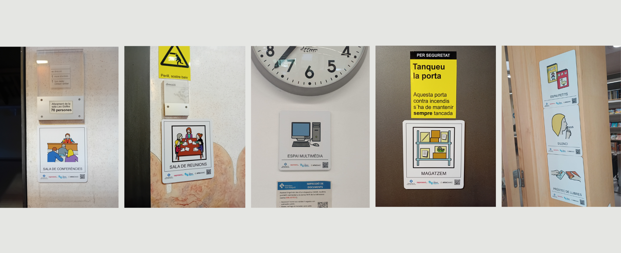 Aquests pictogrames formen part del Projecte Visual “Pictogrames per a la Inclusió” una iniciativa impulsada conjuntament amb el Centre Pilot i l’IFP Antoni Algueró. El projecte utilitza pictogrames de lliure ús d’ARASAAC (Aragó Sistema Augmentatius i Alternatius de la Comunicació) per senyalitzar serveis i espais socioeducatius del municipi.