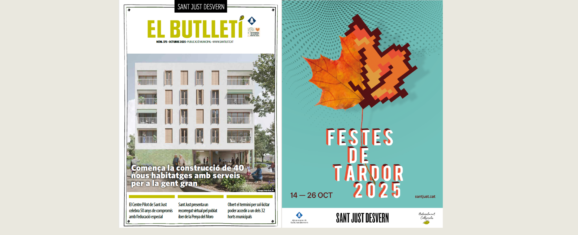 El Butlletí d’octubre destaca a la portada i a les primeres pàgines l’inici de la construcció de 40 nous habitatges amb serveis per a la gent gran a Can Modolell, conegut com el segon Mil·lenari. Amb un pressupost d’execució de més de 2,6 milions d’euros, aquest equipament vol ser un pas endavant en les polítiques d’habitatge i en l’atenció a la gent gran, combinant allotjament assequible amb espais pensats per fomentar la vida comunitària, el suport mutu i la convivència intergeneracional a la zona, com ja fa anys es va fer al Barri Centre amb els habitatges del complex del Mil·lenari.
