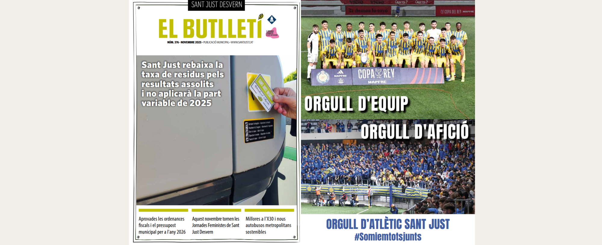 El Butlletí de Novembre destaca a la portada i a les primeres pàgines que l’Ajuntament no cobrarà la part variable de la taxa de residus de 2025 i que el municipi supera els objectius europeus de recollida selectiva durant el primer semestre.