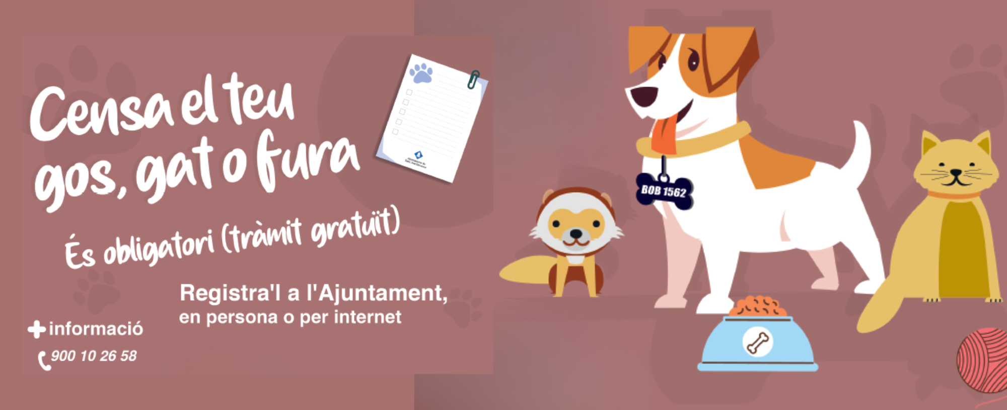 - Identificació doble obligatòria: tots els gossos han de tenir microxip i estar inscrits al cens municipal (s’elimina la xapa). També hauran de disposar d’identificació genètica (ADN).